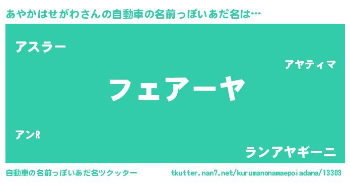 | 欧米人風あだ名 | 『あやかはせがわ・ステッグマイヤー』 |