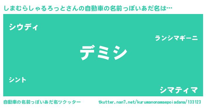 | 胡散臭い通販商品みたいなあだ名 | 『絶対に幸福をもたらす水素水…その名も「しまむらしゃるろっと」』 |