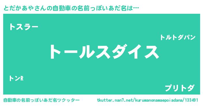 | 肩書あだ名 | 『とだかあや少尉』『とだかあや総理大臣』 |