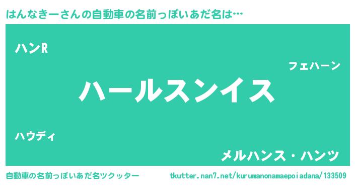 | 男性向けラノベタイトル風あだ名 | 『転生したらはんなきーだった件』 |