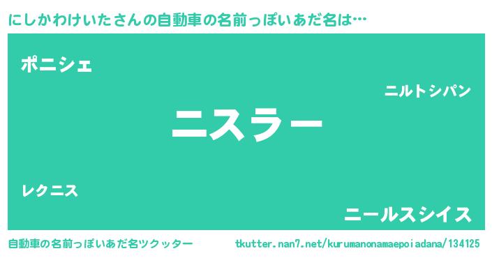 | 意味不明あだ名 | 『にしかわけいたフォーエバー』 |