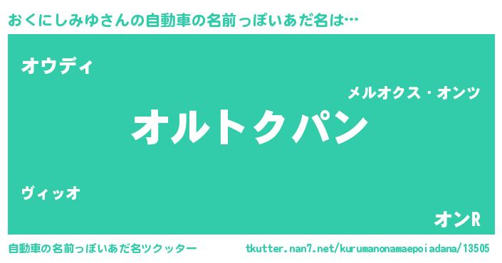 | 欧米人風あだ名 | 『ウサインおくにしみゆ』 |