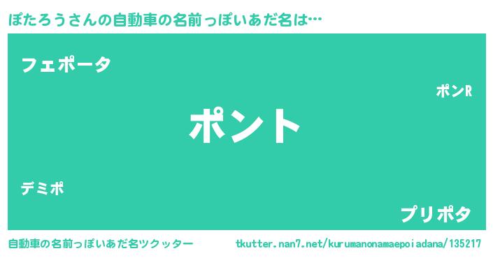 | 女子向けラノベタイトル風あだ名 | 『ぽたろうの卵を拾いまして』 |