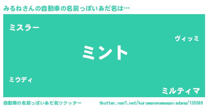 | 男性向けラノベタイトル風あだ名 | 『みるねの嫁は女の子じゃないと思った?』 |