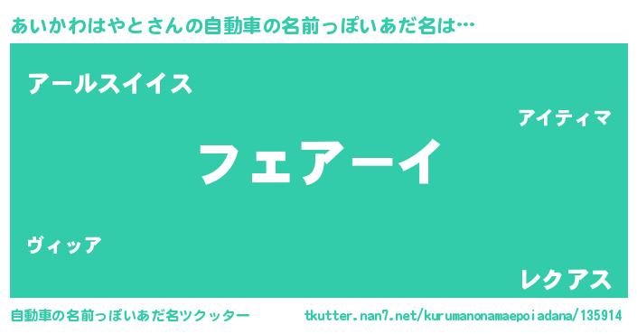 | 欧米人風あだ名 | 『あいかわはやと・ステッグマイヤー』 |