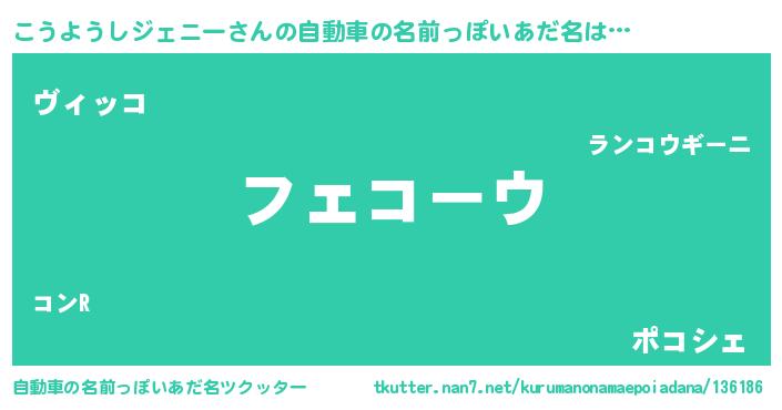 | 男性向けラノベタイトル風あだ名 | 『うちのこうようしジェニーが世界を掌握している!』 |