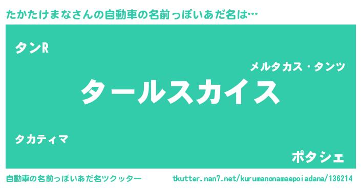 | 肩書あだ名 | 『たかたけまな少将』『たかたけまな助手』 |