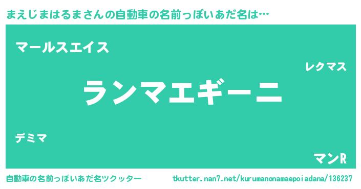 | ヘコむあだ名 | 『まえじまはるま(苦笑)』『まえを』 |