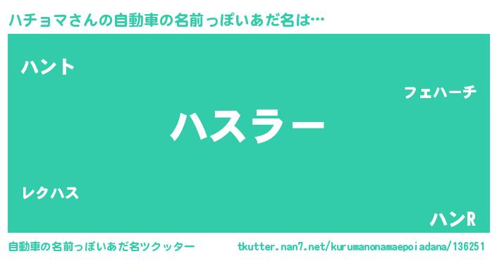 | 2回繰り返すあだ名 | 『ハハチチ』『ぬちゅぬちゅ』 |