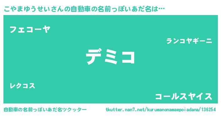 | ヘコむあだ名 | 『こやまゆうせい(苦笑)』『こやにゅー』 |