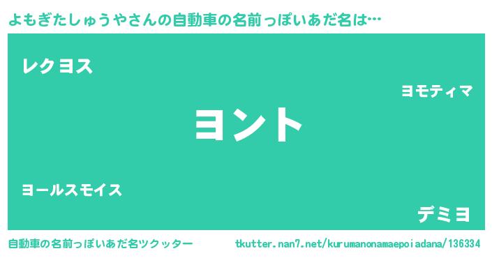 | 欧米人風あだ名 | 『ウサインよもぎたしゅうや』 |