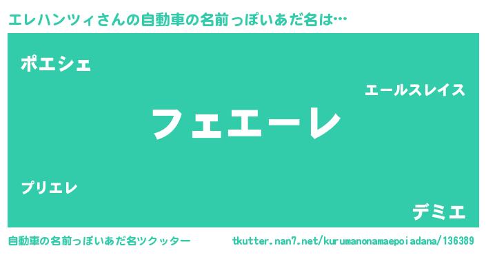 | 意味不明あだ名 | 『住所不定無職エレハンツィ(95歳)』 |