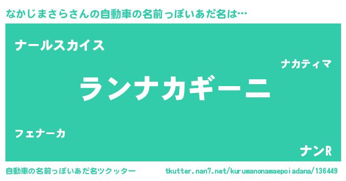 | 欧米人風あだ名 | 『アンジェラ・なかじまさら』 |