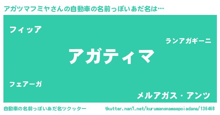 | 胡散臭い通販商品みたいなあだ名 | 『億万長者になれるブレスレット…その名も「アガツマフミヤ」』 |