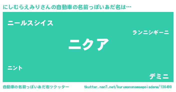 | 欧米人風あだ名 | 『にしむらえみりクリステル』 |