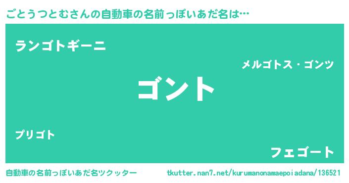 | ポケモン風あだ名 | 『ヒゴトウツトム』『ゴトゴンZ』 |