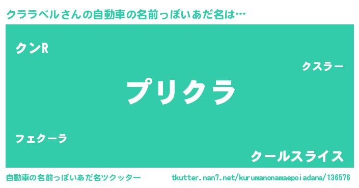 | 男性向けラノベタイトル風あだ名 | 『クララベルの憂鬱』『緋弾のクララベル』 |