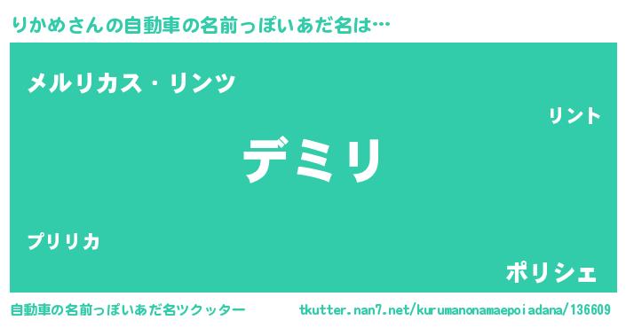 | 男性向けラノベタイトル風あだ名 | 『りかめという概念が存在しない退屈な世界 』 |