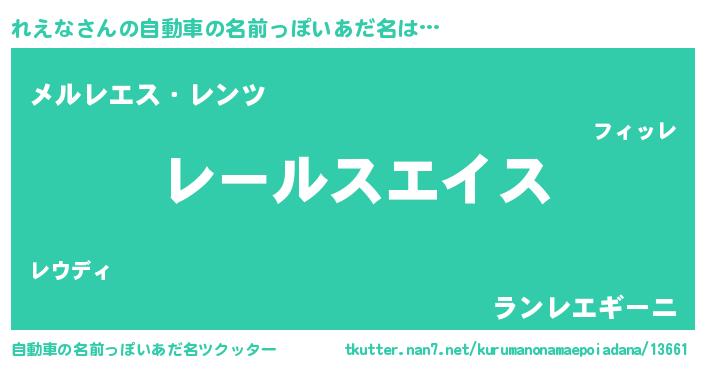 | 男性向けラノベタイトル風あだ名 | 『レエナスレイヤー』『魔弾の王とれえな』 |