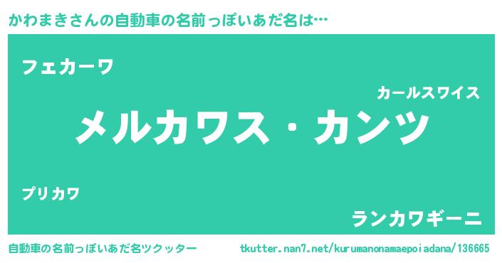 | 男性向けラノベタイトル風あだ名 | 『Re:かわまきから始める異世界生活』 |