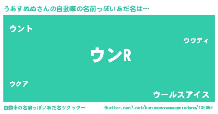 | 女子向けラノベタイトル風あだ名 | 『死神うあすぬぬの再婚』 |