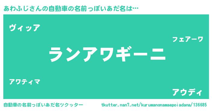 | 欧米人風あだ名 | 『アンジェラ・あわふじ』 |