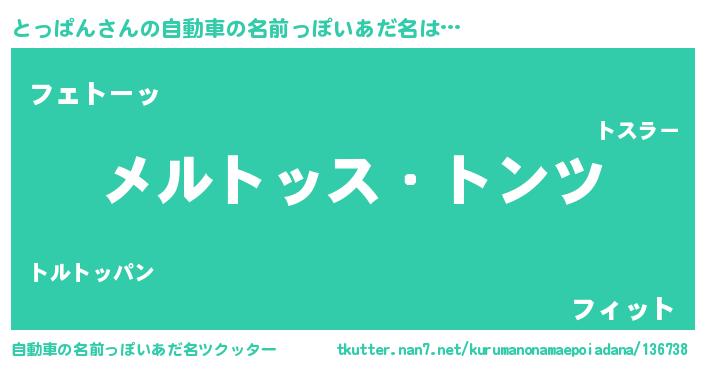 | 男性向けラノベタイトル風あだ名 | 『Re:とっぱんから始める異世界生活』 |
