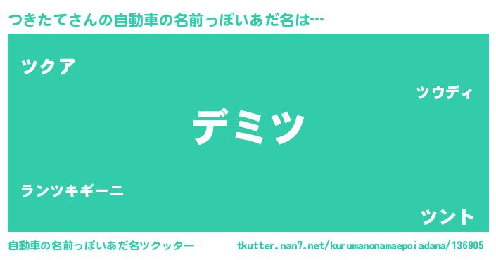 | 意味不明あだ名 | 『永久保存つきたて』『自称つきたて』 |