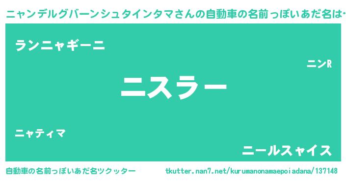 | 欧米人風あだ名 | 『ニャンデルグバーンシュタインタマクリステル』 |