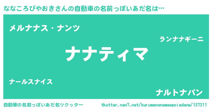 | 男性向けラノベタイトル風あだ名 | 『ナナコロビヤオキアートオンライン』 |