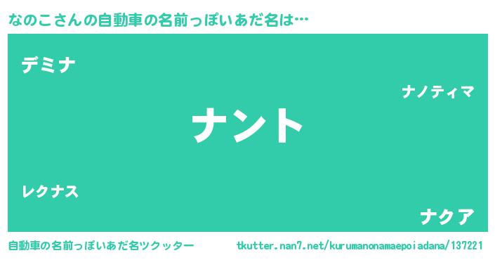 | ヒーロー風カッコイイあだ名 | 『幻影騎士ナノ』『ネオナノコ』 |