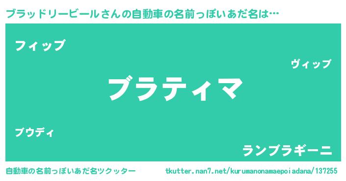 ブラッドリービールさんの自動車の名前っぽいあだ名をツクッター!