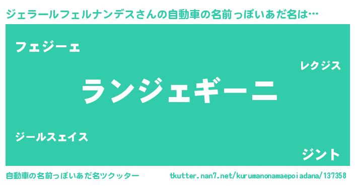 | 男性向けラノベタイトル風あだ名 | 『はたらくジェラールフェルナンデスさま!』 |