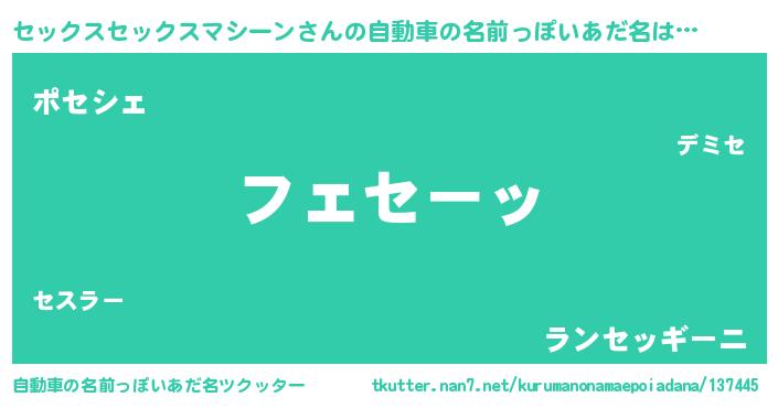 | 男性向けラノベタイトル風あだ名 | 『うちのセックスセックスマシーンが世界を掌握している!』 |