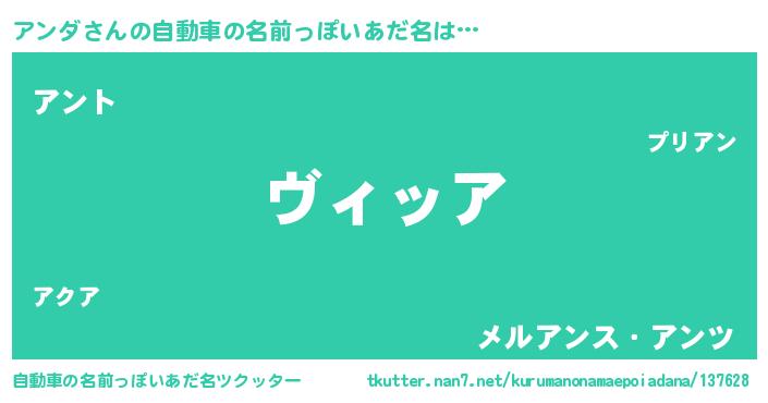| 女子向けラノベタイトル風あだ名 | 『アンダの契約王妃』『アンダ様がみてる』 |