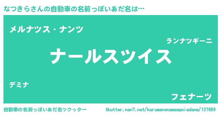 | 男性向けラノベタイトル風あだ名 | 『転生したらなつきらだった件』 |