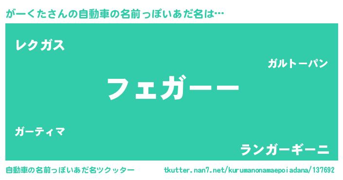| 意味不明あだ名 | 『自称がーくた』『ペロリンがーくた』 |
