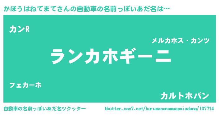 | 男性向けラノベタイトル風あだ名 | 『かほうはねてまてに滅ぼされるだけの簡単なお仕事です』 |