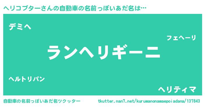 | 胡散臭い通販商品みたいなあだ名 | 『来世でも幸せになれる健康食品…その名も「ヘリコプター」』 |