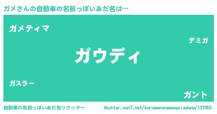 | ポケモン風あだ名 | 『ガーメイ』『ガメチュウ』『ヒガメ』 |