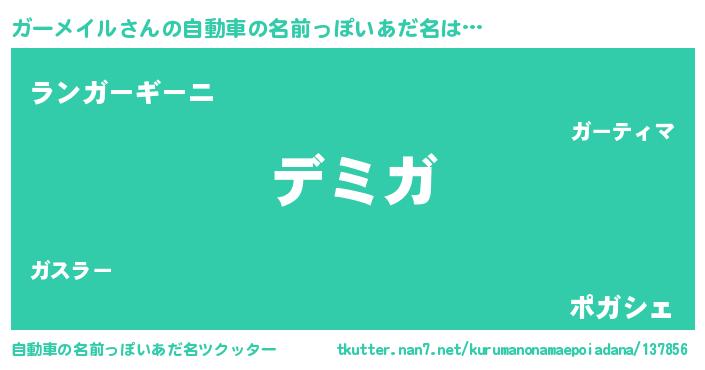 | 男性向けラノベタイトル風あだ名 | 『ガーメイルという概念が存在しない退屈な世界 』 |