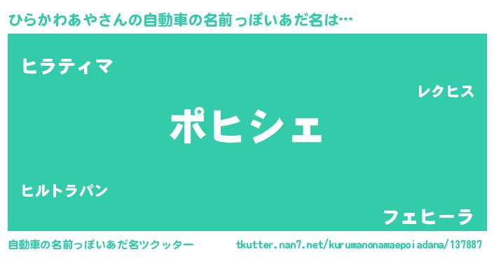 | ヒーロー風カッコイイあだ名 | 『仮面ヒラダー』『スーパーヒラカワアヤ』 |