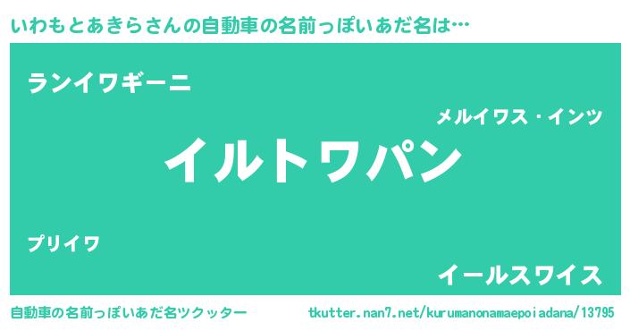 | 男性向けラノベタイトル風あだ名 | 『ダンジョンにいわもとあきらを求めるのは間違っているだろうか』 |