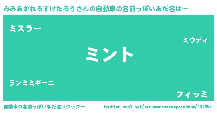 | 男性向けラノベタイトル風あだ名 | 『みみあかねろすけたろうの嫁は女の子じゃないと思った?』 |