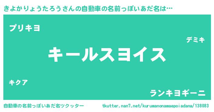 | 胡散臭い通販商品みたいなあだ名 | 『モテモテ間違いなしブレスレット…その名も「きよかりょうたろう」』 |