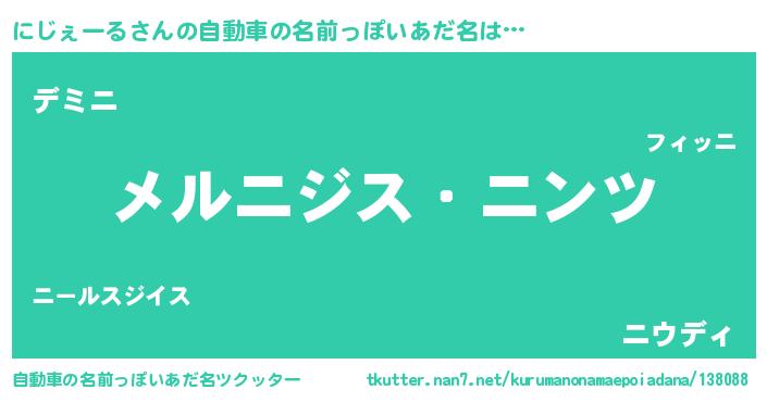 | ファンタジー風あだ名 | 『ゼニジトゥ』『ニジディッシュ』 |