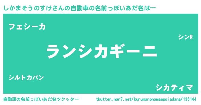 | 欧米人風あだ名 | 『アンジェラ・しかまそうのすけ』 |