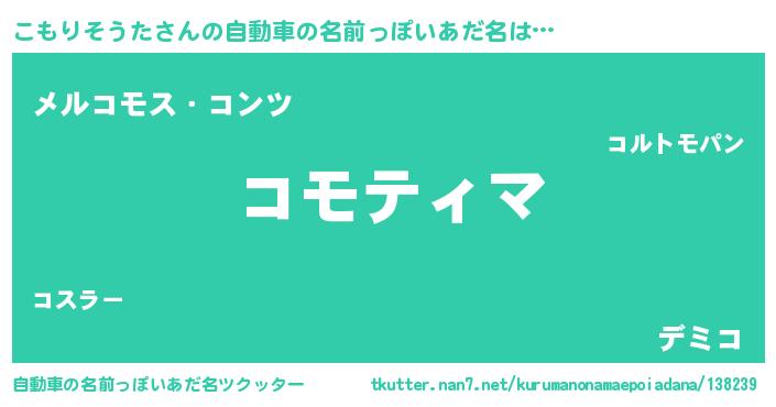 | ヒーロー風カッコイイあだ名 | 『スーパーコモリソウタ』『黄金騎士コモ』 |