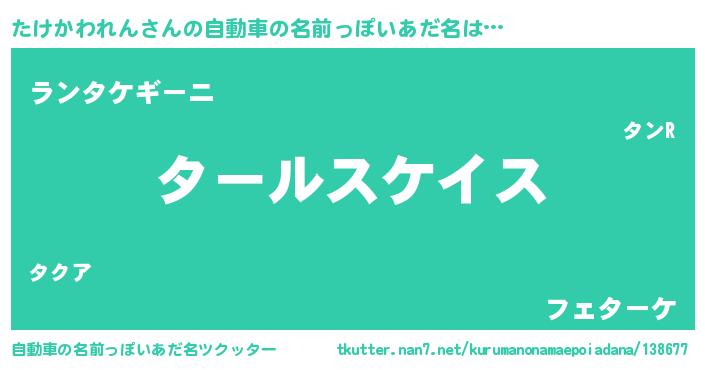 | 男性向けラノベタイトル風あだ名 | 『タケカワレンスレイヤー』 |
