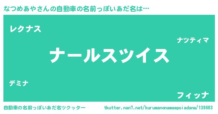 | 男性向けラノベタイトル風あだ名 | 『ナツメアヤスレイヤー』 |